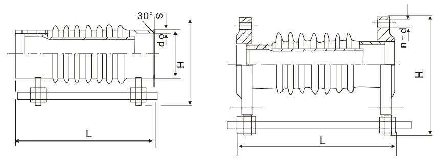 膨脹節(jié)由一個(gè)波紋管和兩個(gè)接管構(gòu)成,它通過(guò)波紋管的柔性變形來(lái)吸收軸向位移(也有少量的橫向、角向位移),有接管聯(lián)接和法蘭聯(lián)接兩種形式。膨脹節(jié)上的小拉桿主要是運(yùn)輸過(guò)程中的剛性支撐或作為產(chǎn)品預(yù)變形時(shí)調(diào)節(jié)尺寸用,不是承力件。該類膨脹節(jié)不能約束管道的壓力推力,壓力推力有兩側(cè)主固定管架承受。