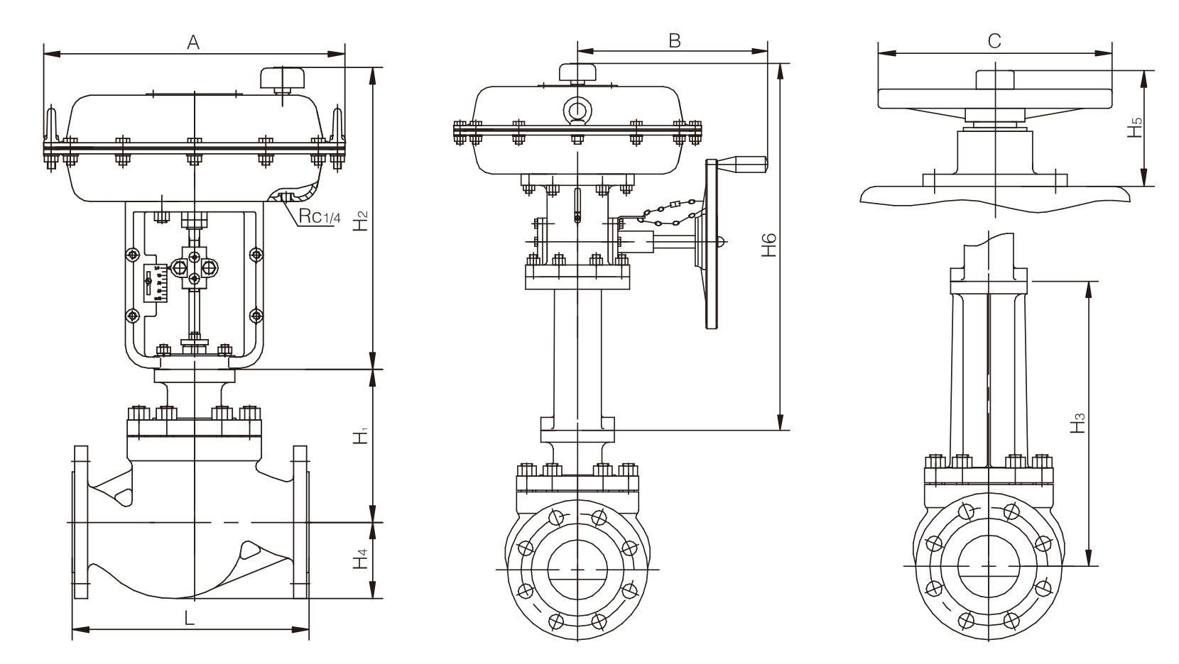 氣動(dòng)套筒調(diào)節(jié)閥是由多彈簧氣動(dòng)薄膜執(zhí)行機(jī)構(gòu)和低流阻精小型調(diào)節(jié)閥閥體組成,多彈簧執(zhí)行機(jī)構(gòu)高度低、重量輕、裝備簡便。閥體流道呈S流線型,具有結(jié)構(gòu)緊湊、重量輕、動(dòng)作靈敏、壓降損失小、閥容量大、流量特性精確、維護(hù)方便等優(yōu)點(diǎn),可用于苛刻的工作條件。其配用電-氣閥門定位或氣動(dòng)閥門定位器,可實(shí)現(xiàn)對工藝管路流體介質(zhì)的自動(dòng)調(diào)節(jié)控制。廣泛應(yīng)用于精確控氣體、液體、蒸汽等介質(zhì)的工藝參數(shù)如壓力、流量、溫度、液位等參數(shù)保持在給定值。